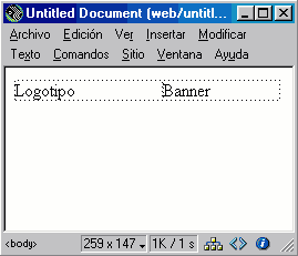 Por ejemplo, en la celda de la izquierda podemos poner "logotipo" y en la de la derecha "banner". Podéis escribirlas directamente o bien cambiando en el código HTML los símbolos por las palabras deseadas. Es lo mismo.